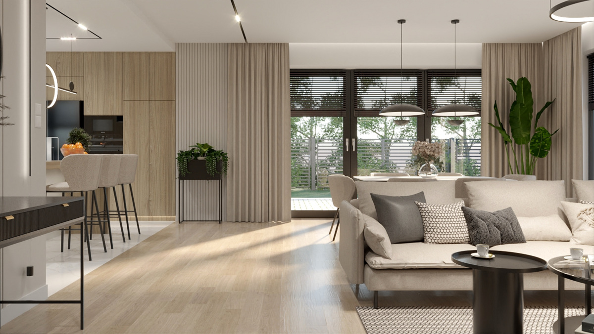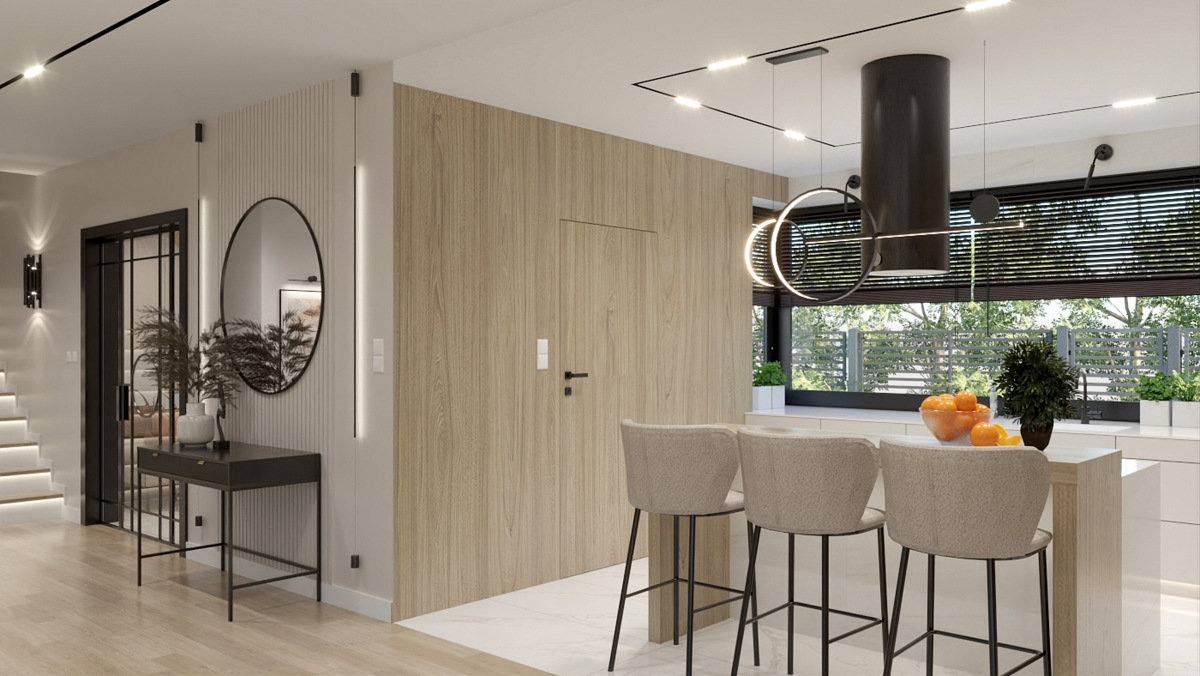 Salon z kuchnią, wiatrołap