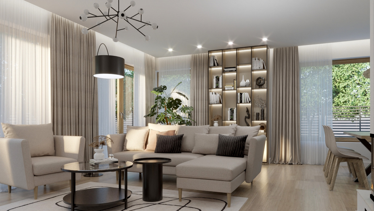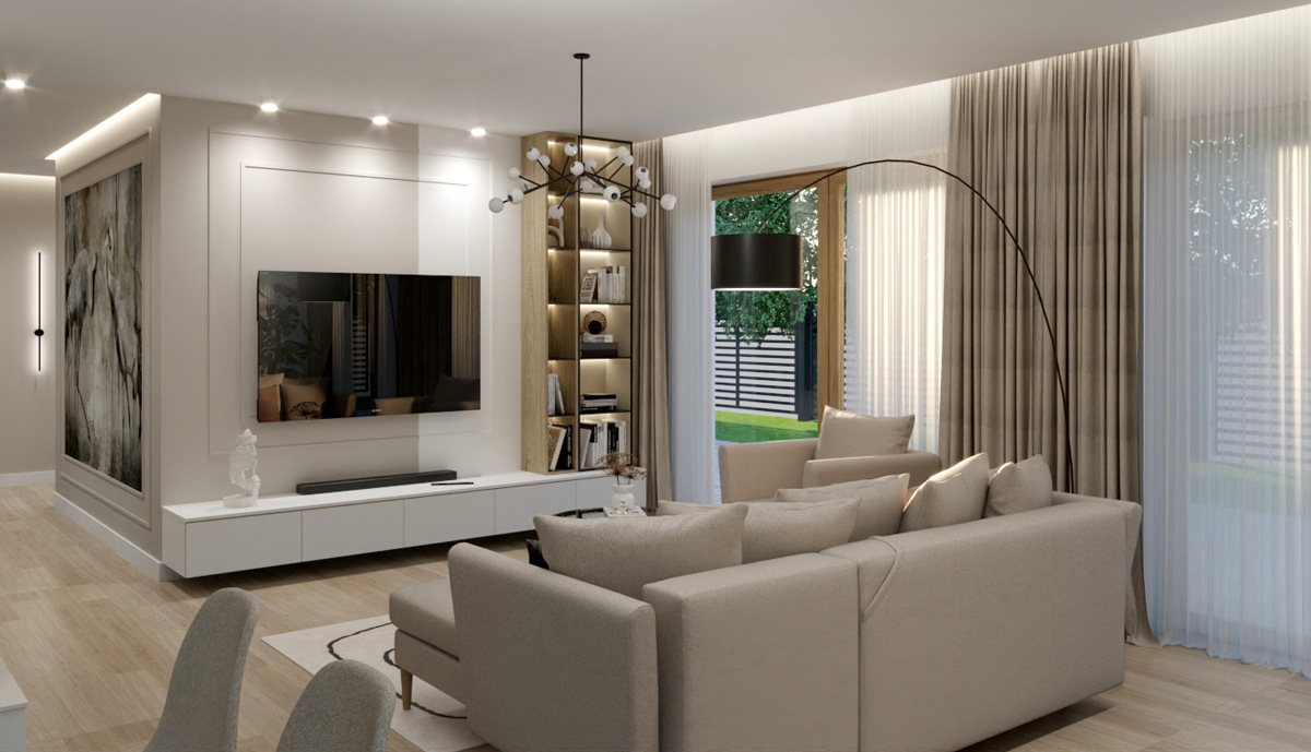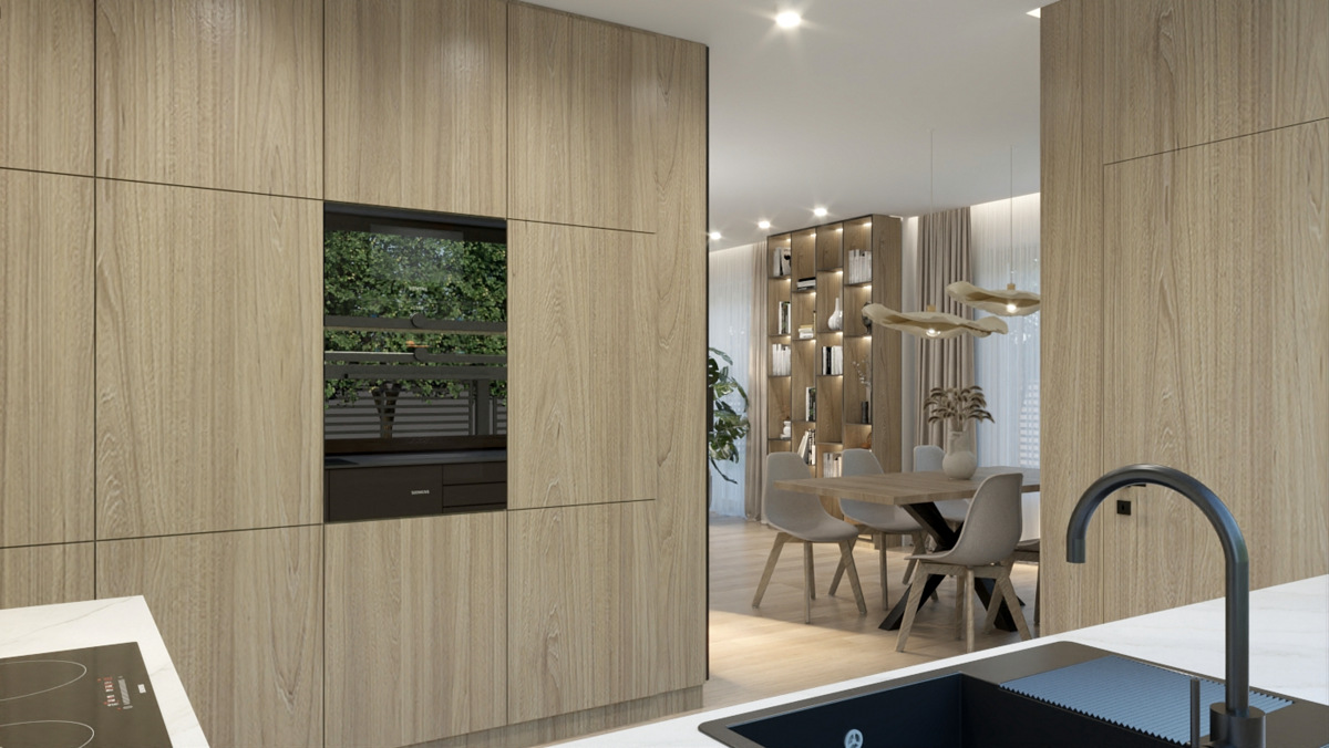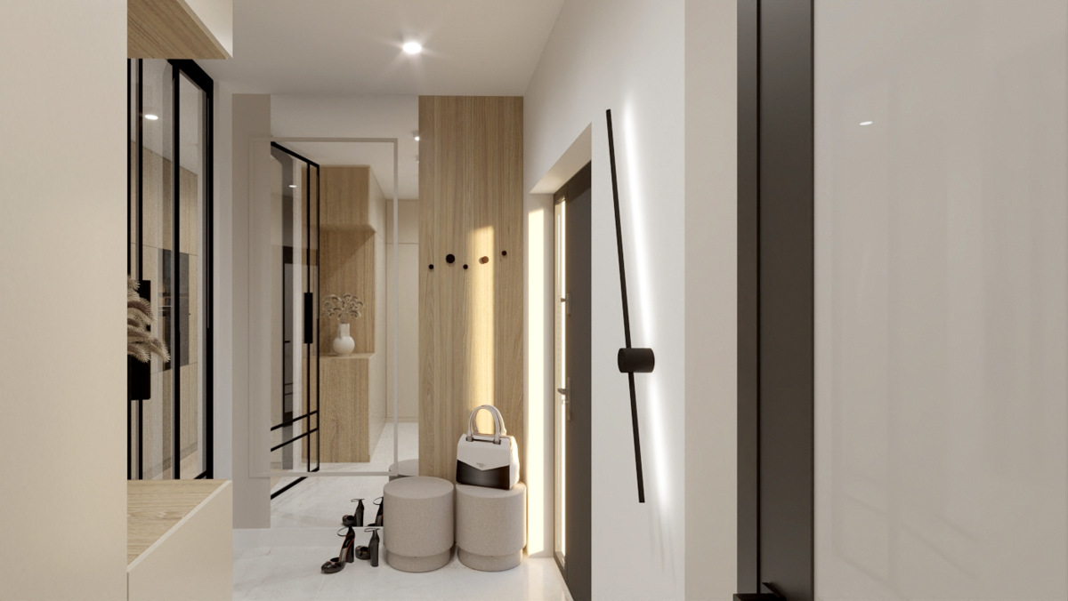 Salon z kuchnią, wiatrołap