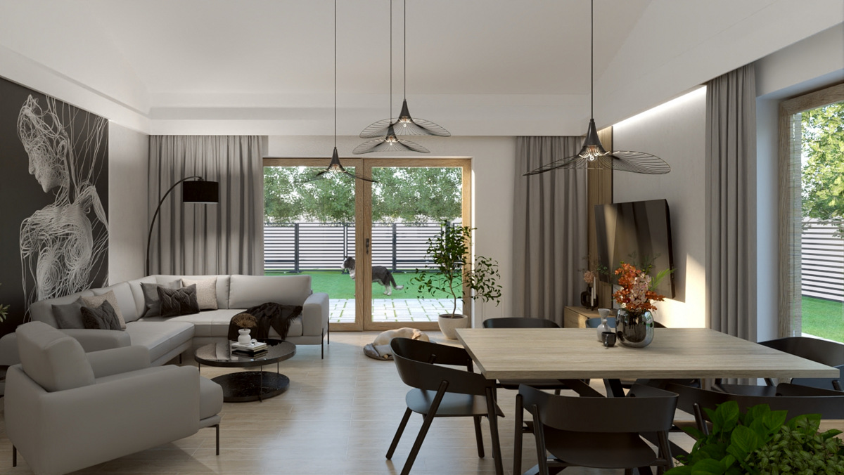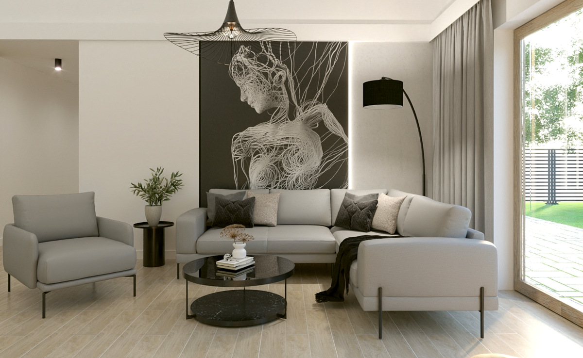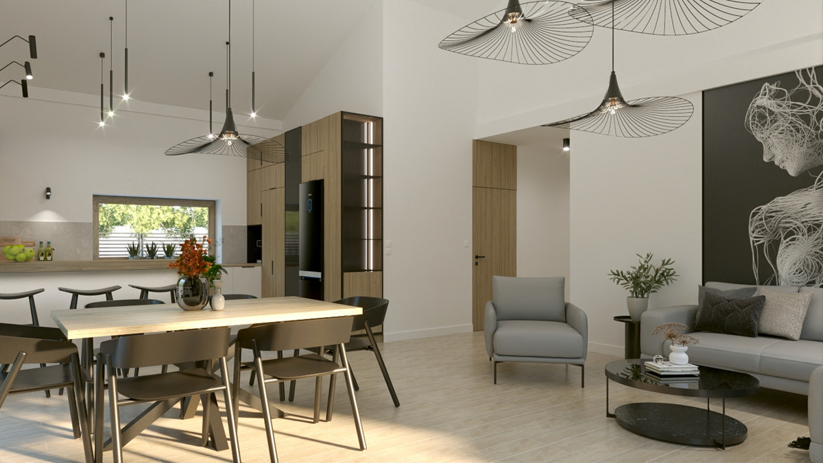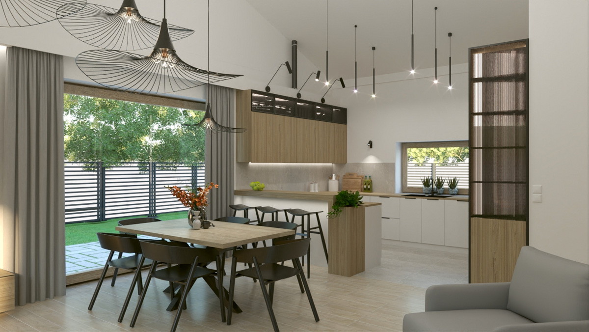Salon z kuchnią, wiatrołap